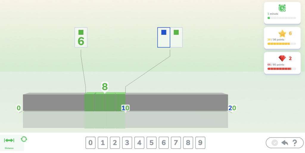 I felt that we did see some significant improvement in ‘number line sense’. That is, the ability to tell roughly where a number falls relative to other numbers. How much smaller than 10 is 8? Is 18 between 10 and 15, or 15 and 20? At first, my child was clueless about finding the location of a specific number on a numberline only showing 0, 5, and 10. Over a few rounds of playing this game, they really improved at knowing where different numbers fell, and this later extended to numbers up to 20, and then 50.