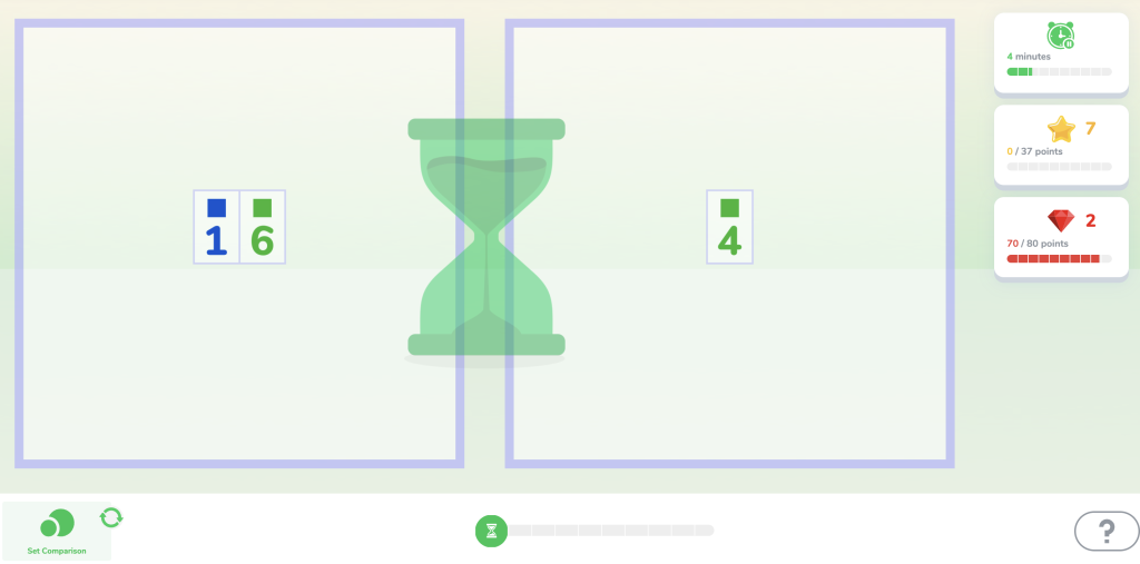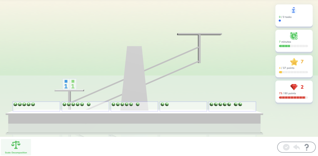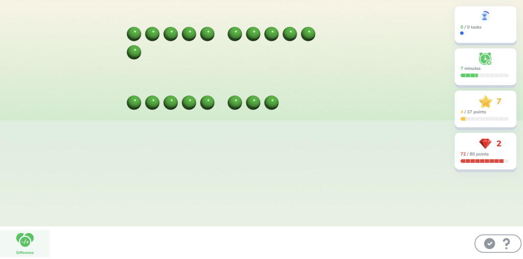 The software is also not really able to tell whether a child has mastered a skill, or has found a workaround. For addition and subtraction questions, my child was often counting on their fingers. The software tries to get around this by introducing a time limit for some activities. Essentially, my child got very good at counting on their fingers fast, and then they reached a point where they were completely stuck, because they were not building the underlying skills to move forwards. I didn’t feel that the software improved my child’s addition and subtraction skills in real life. They were not able to visualise a ten-frame system well enough to use it effectively when it was not right in front of them. They were wholly reliant in counting objects on the ten-frame in the game, with no transference to maths outside the game.