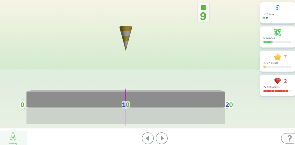 My child was mostly able to use the software independently after some initial help getting going. At age six, they didn’t have loads of computer experience, and there was one time-pressured activity which they were unable to complete without assistance. This was the activity where a numbered cone falls from the sky, and you have to direct it to the correct point on the number line before it hits the line.