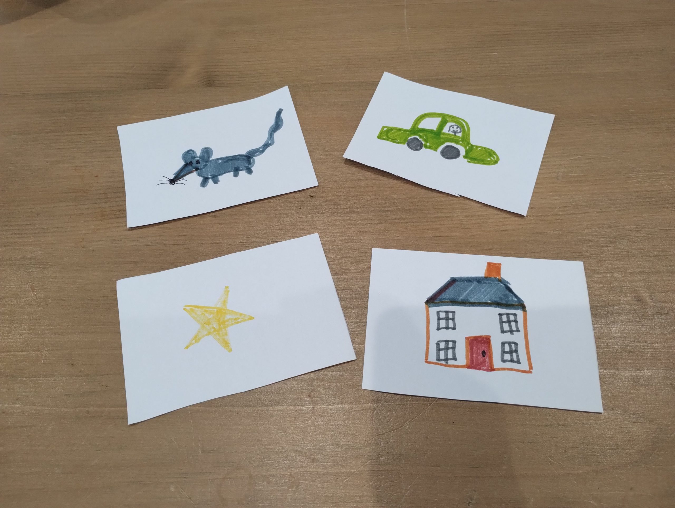 A good rhyming activity is to make a dozen or so small cards with little pictures on, with pairs of cards which rhyme. For example, star and car, mouse and house, cat and hat. As a starter activity, you could put three cards out, two of which rhyme and one of which does not. The challenge is to find the rhyming words, and the odd one out. Once your child has built confidence with this activity, you can put out more cards and have a game of finding the matching pairs. A greater challenge is a memory game where the cards are face down.