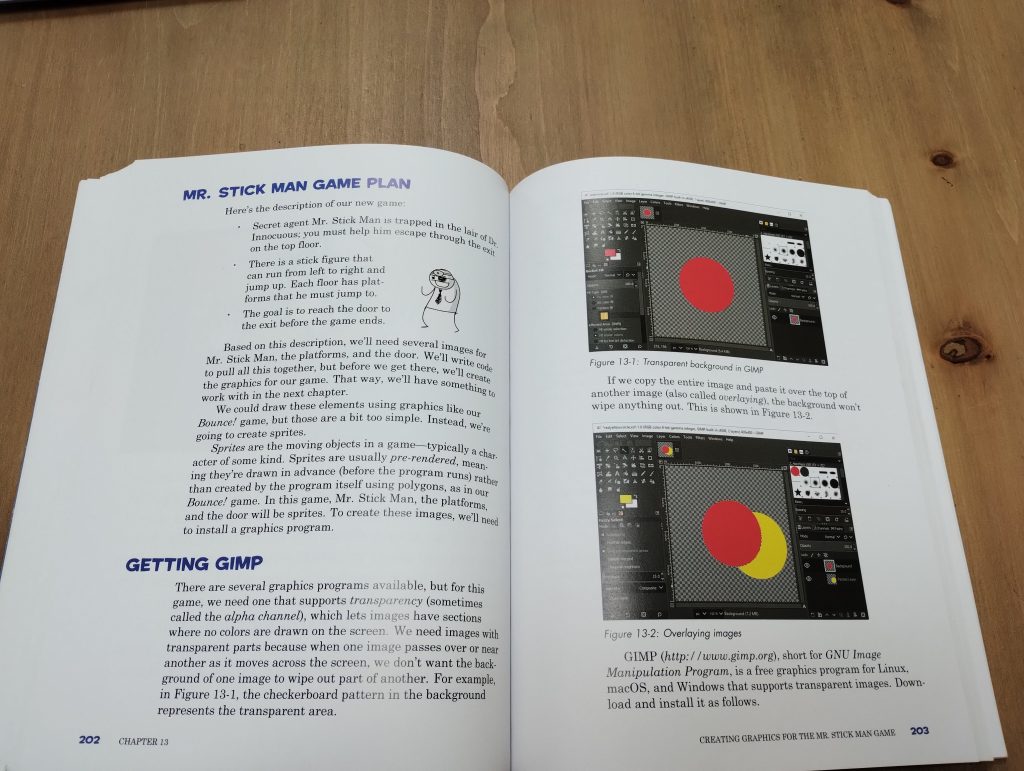 The second half of Python for Kids is two larger game projects. In Bounce! kids have to create a simple game with a moving paddle and a bouncing ball, and keep the ball bouncing off the game area, rather than dropping out of the bottom. In Mr. Stickman Races for the Exit where a small figure needs to jump from platform to platform to exit the game area in time.