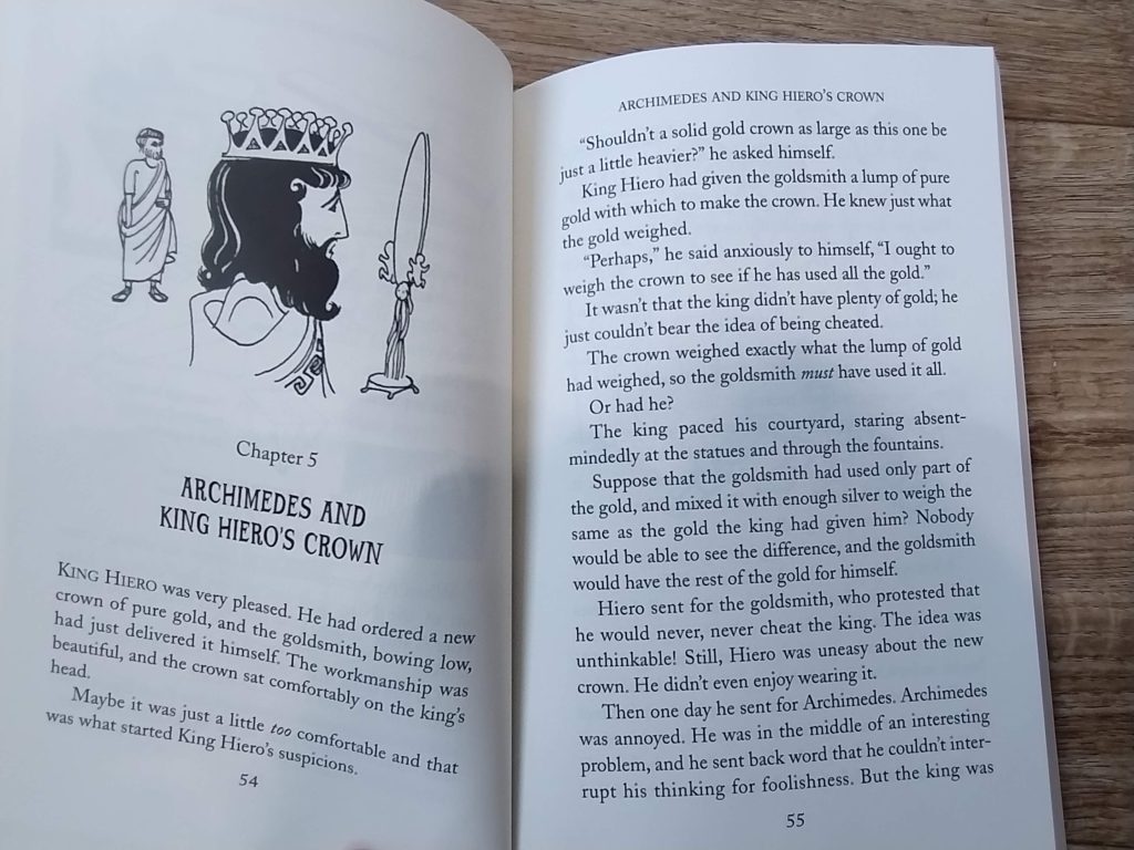 A lovely book, well worth reading. Archimedes discovered so many fundamental principles of mathematics and science on which we rely. There are lots of simple diagrams and pictures to aid understanding, as well as interesting stories from Archimedes’ life.